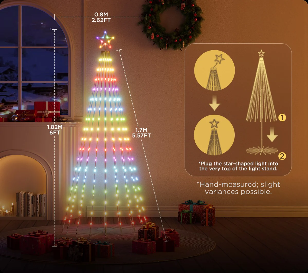 ✨ A New Tree Every Night: With millions of RGB color combinations, 11 dynamic effects, and endless static options, your tree will never be boring. Set a soft, warm glow for a cozy evening or a vibrant, flashing light show for a holiday party.